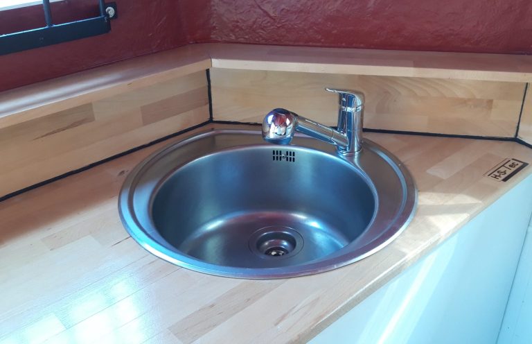 Klein, praktisch, clever: Hier könnt ihr Gläser spülen, Hände waschen oder Drinks frisch vorbereiten – alles direkt an der Bar, ohne dass der Flow der Party unterbrochen wird.