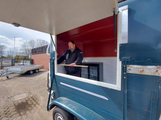 Die Blaue Bude war bis 2023 noch ein ganz normaler Pferdeanhänger. Auf Ebay entdeckt – und schon kurz darauf stand das Umbau-Team bereit.